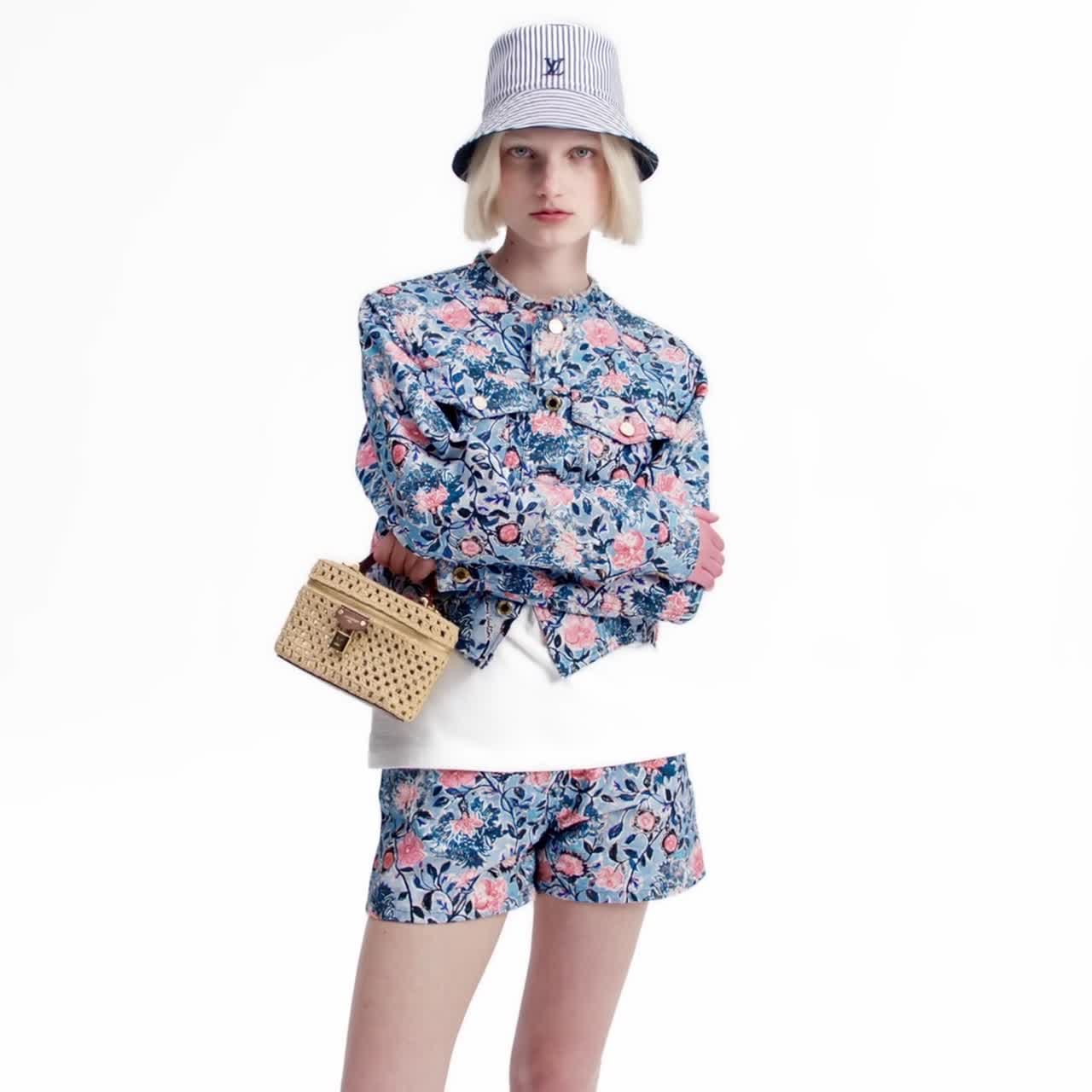 Jaket denim ini tampil chic dengan jacquard motif sulur bunga yang bernuansa romantis khas musim ini. Sentuhan kasual terlihat melalui hem bagian depan yang berujung runcing dan detail martingale di bagian belakang yang terinspirasi dari busana formal. Dua saku flap di bagian dada menyajikan kesan rapi, sementara hardware keemasan yang berkilau menyempurnakan desainnya.