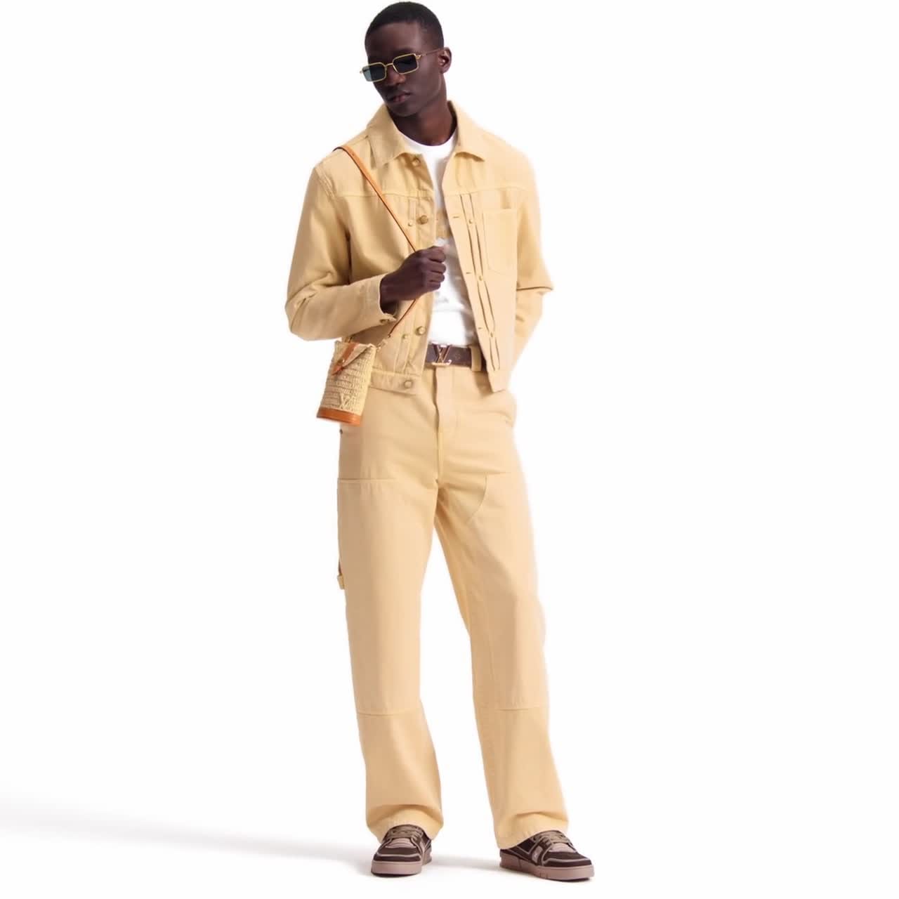 Carpenter pants ini tampil dalam nuansa kuning muda dari proses pewarnaan garment-dyed yang menghasilkan efek washed yang berkesan vintage. Detail khas carpenter terlihat pada lapisan tambahan dan hammer holder loop, sementara bordir Monogram menghiasi kedua kaki serta satu saku patch di bagian kiri. Kancing dan rivet dengan aksen mutiara bernuansa senada menyajikan sentuhan akhir yang memikat. Celana panjang ini dapat dipadukan dengan jaket bernuansa musim panas yang serasi.
