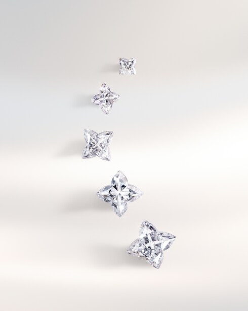 다이아몬드의 캐럿 사이즈는 무게와 일치하며, 1캐럿은 0.2그램에 해당합니다. 루이 비통은 디자인에 따라 각 스톤을 세심하게 선택할 수 있도록 다양한 캐럿 무게의 다이아몬드를 선별합니다.