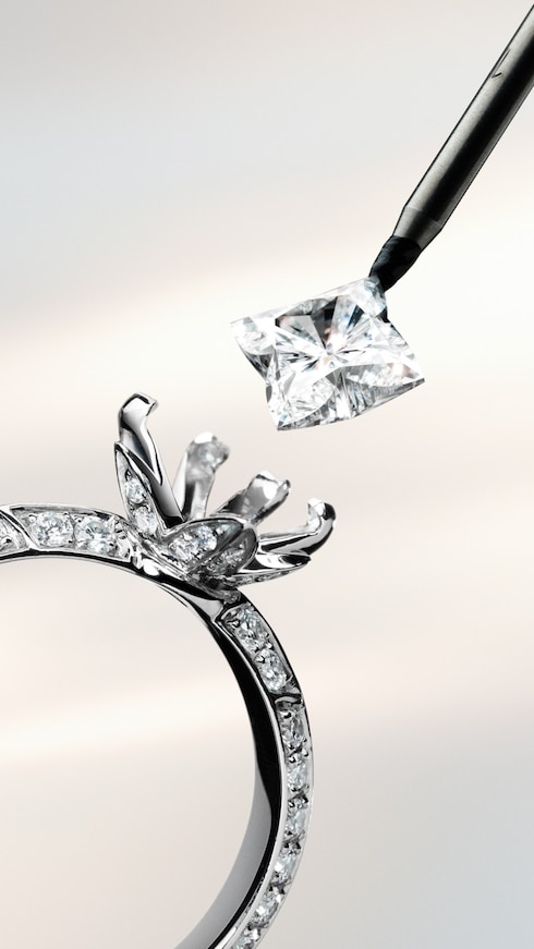 각 센터 스톤은 프랑스 또는 이탈리아의 장인이 수작업으로 세팅하며, 섬세한 V자형 프롱 또는 꽃 모양 베젤을 특징으로 하는 세련되고 섬세한 세팅을 통해 LV 다이아몬드 하나하나에 생명을 불어넣습니다.