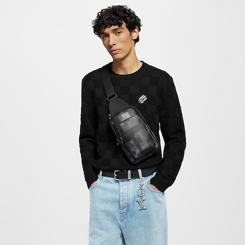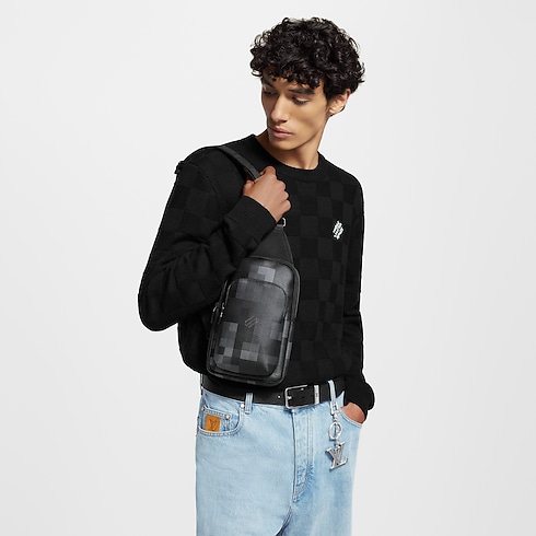 다모플라주 블랙 코팅 캔버스 소재로 현대적인 실루엣에 한층 모던한 감각을 더해 선보이는 에비뉴 슬링 백. 그레이 및 블랙 색상의 픽셀화한 체커보드 패턴과 매트한 블랙 색상의 하드웨어가 조화를 이루며 세련되고 남성적인 매력을 선사하는 디자인. 메인 수납공간 및 두 개의 지퍼형 포켓을 갖춘 실용적인 아이템. 편안한 크로스 바디 스타일로 연출할 수 있는 조절형 싱글 스트랩.