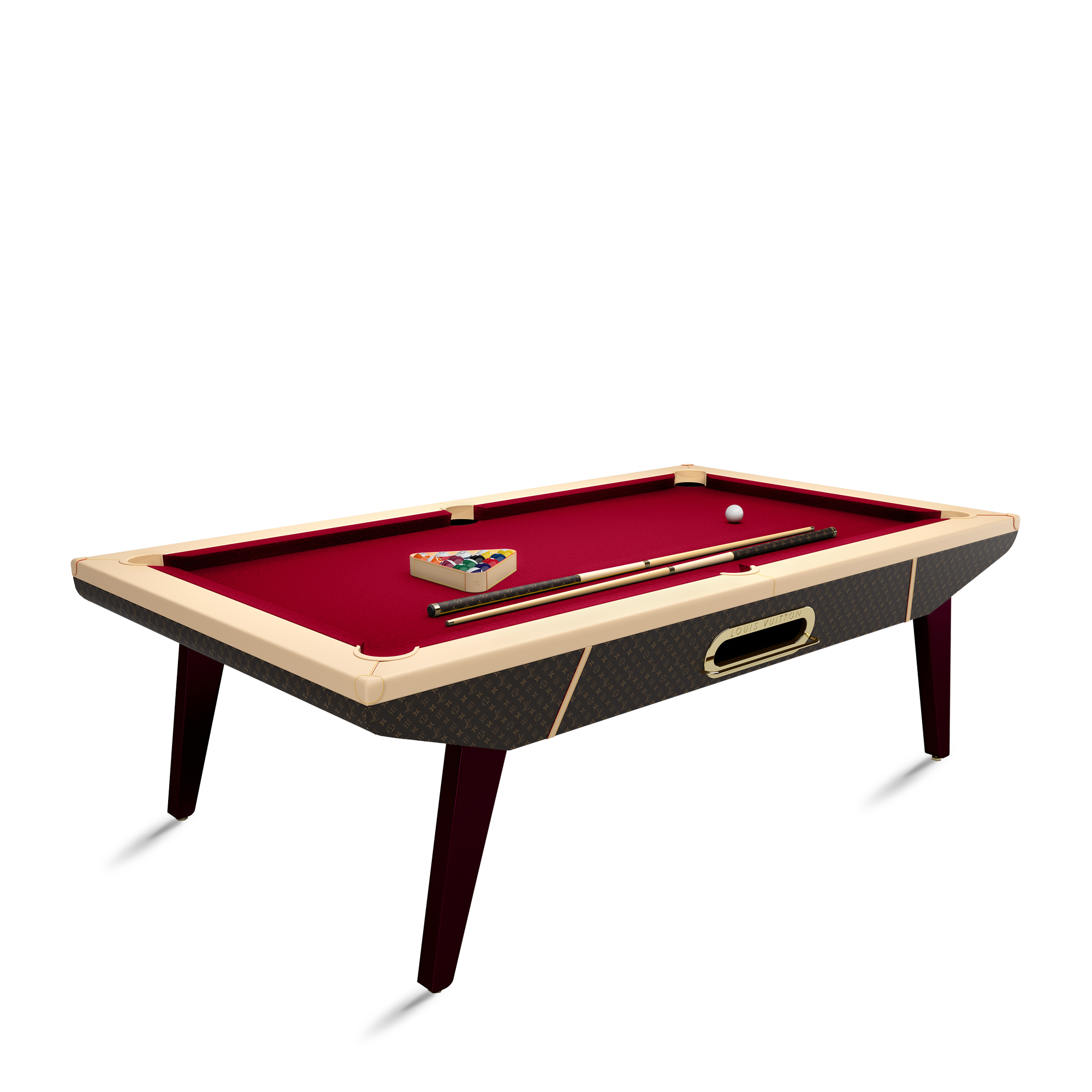 게임을 즐길 수 있는 공간에 한층 더 매력을 더해줄 빌리어드 캔버스 테이블. 트렁크를 제작하는 하우스의 전문 기술을 활용하여 제작한 아이템. 수작업으로 제작한 프레스 스터드 및 핸드 페인팅으로 완성한 모서리가 돋보이는 디자인. 모노그램 플라워로 장식한 볼, 핫 스탬핑으로 새긴 루이 비통 시그니처가 시선을 사로잡는 가죽 삼각대 등의 감각적인 디테일이 특징.