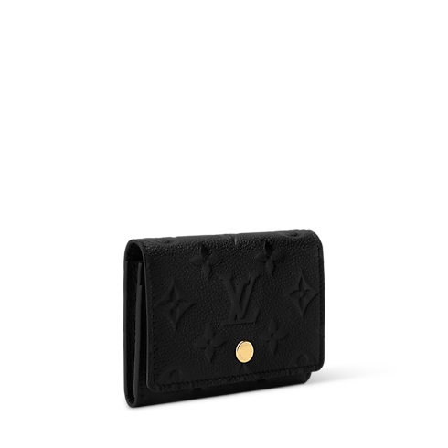 아이코닉한 모노그램 앙프렝뜨 컬렉션에서 선보이는 날렵하고 세련된 비즈니스 카드 홀더. 시대를 초월하는 블랙 색상. 카우하이드 안감을 더하고 작은 문서와 지폐, 카드를 안전하게 보관할 수 있는 여러 개의 포켓을 구성한 아이템. 골드 색조 하드웨어 디테일의 클래식한 디자인.