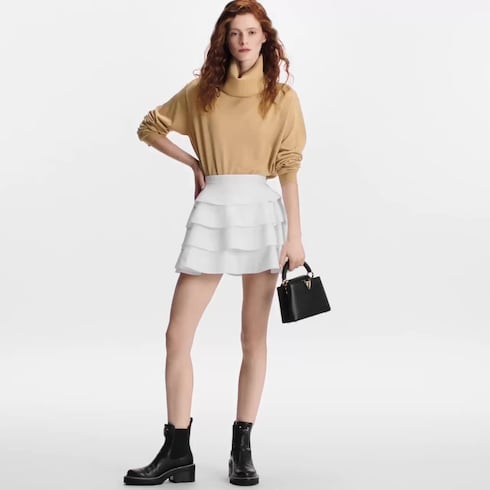 짙은 블랙 색상의 토뤼옹 가죽 소재로 세련되고 감각적인 매력을 자아내는 카퓌신 미니 핸드백. 골드 톤 핸들 링 및 상징적인 LV 이니셜이 특징. 작은 사이즈로 선보이는 클래식한 카퓌신 디자인. 숄더백 또는 크로스 바디 백으로 연출할 수 있는 넓은 탈착형 스트랩.