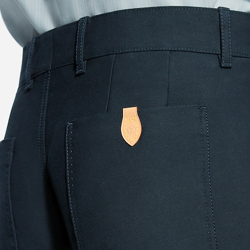 아름다운 드레이핑이 돋보이는 네이비 블루 색상 팬츠. 고급스러운 면 실크 혼방의 더블 페이스 크레이프 소재. 피크 스티칭 디테일로 세련되게 포인트를 더한 디자인. 하우스의 가죽 제품 헤리티지를 연상시키는 VVN 가죽 시그니처 탭을 장식한 뒷면 포켓. 매칭되는 셔츠와 함께 세련되고 편안한 룩을 연출할 수 있는 간절기 필수 아이템.