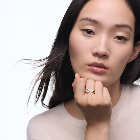 컬러 블라썸 미니 스타 반지, 옐로우 골드, 소달라이트와 다이아몬드