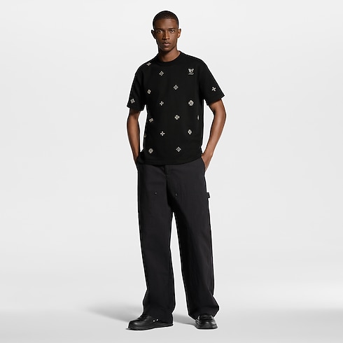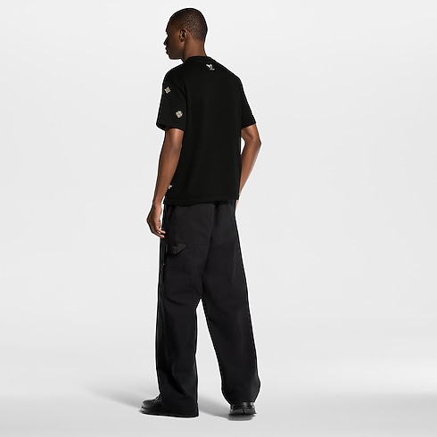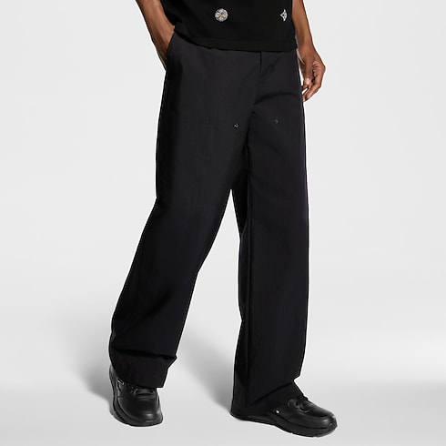 테크니컬 면 립스톱 소재로 선보이는 블랙 색상의 카고 팬츠. 여름철 도심에서 착용하기 좋은 가볍고 통기성 뛰어난 디자인. 은은한 모노그램 플라워 리벳을 장식한 무릎 위 포켓과 뒷면 왼쪽 포켓에 더한 그로그랭 모노그램 해머 루프를 구성해 유틸리티 감성을 선사하는 스타일. 매칭되는 싱글 브레스티드 재킷과 함께 현대적인 세트 룩을 연출할 수 있는 아이템.