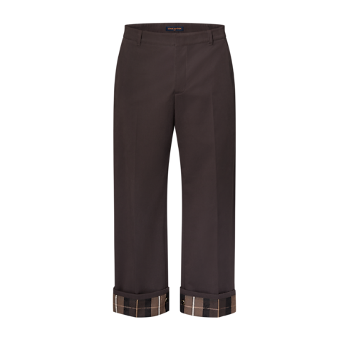 프레피한 크롭 길이의 실루엣을 선보이는 짙은 브라운 색상의 치노 팬츠. 버튼을 사용해 접어 올리거나 내려서 스타일링할 수 있는 밑단. 이번 컬렉션의 우아한 모노그램 타탄 패턴을 입힌 안감. 다리 바깥쪽에 포인트를 더하는 시그니처 톤온톤 그로그랭 트리밍. 매칭되는 체크 패턴이 돋보이는 블루종과 함께 현대적인 세트 룩을 연출할 수 있는 아이템.