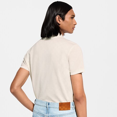 유기농 면 피케 소재의 기본 폴로 셔츠. 전체적으로 은은하게 구현한 다미에 자카드와 왼쪽 가슴 부분에 시그니처 감성을 더해주는 Marque L.Vuitton Déposée 자수가 특징. 진주 효과를 준 세 개의 버튼으로 구성된 잠금장치가 댄디한 감성을 자아내는 디자인. 다양한 데일리 룩에 폭넓게 어울리는 아이템.