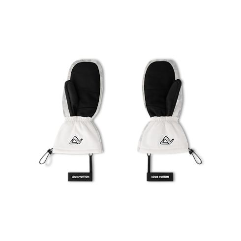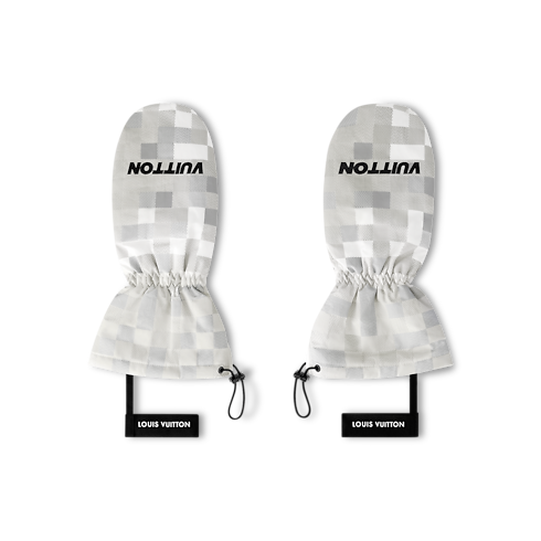 손목 부분이 조절 가능한 기능적인 스키용 미튼. 겨울 여행에 어울리는 세련된 화이트 색조. 2024 봄-여름 패션쇼에서 퍼렐 윌리엄스가 처음 선보인 독특한 모티프로서 카모플라주와 다미에 프린트를 혼합하여 픽셀화한 다모플라주(Damoflage) 패턴을 전체적으로 입힌 아이템.