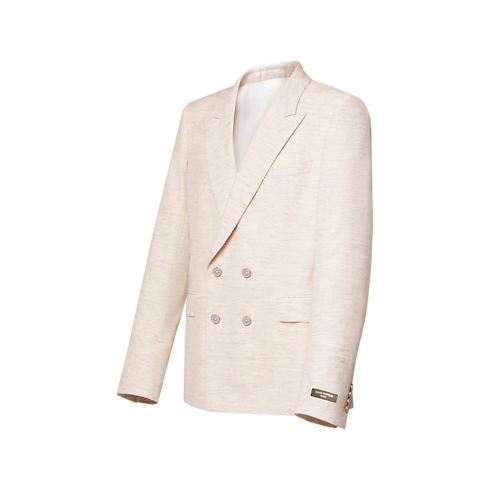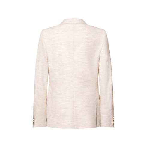 인도의 섬세한 질감과 색조에서 영감을 받은 2026년 봄-여름 패션쇼의 미학을 반영한 세련된 더블 브레스티드 재킷. 인도의 천연 염색 실을 연상시키는 자잘한 점과 결감이 살아 있는 페일 베이지 색상의 울과 면 소재로 직조한 정제된 실루엣. 왼쪽 소매 부분을 장식한 가죽 소재의 시그니처 패치. 매칭되는 플레어드 팬츠와 함께 세련된 수트로 연출할 수 있는 아이템.