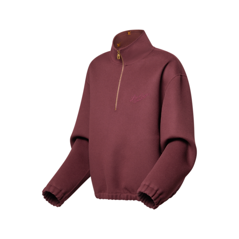 살짝 구조적인 실루엣의 블루종을 연상시키는 하이브리드 하프 지퍼 스타일의 풀오버. 고급스럽고 부드러운 울 및 캐시미어 혼방 더블 페이스 패브릭 소재. 짙은 버건디 색상에 골든 옐로우 색조의 우아한 LV 블라종 자카드 모티프를 더한 안쪽 면. 가슴 부분 및 뒷면에 하우스의 시그니처를 은은하게 장식한 현대적인 스타일의 아이템.
