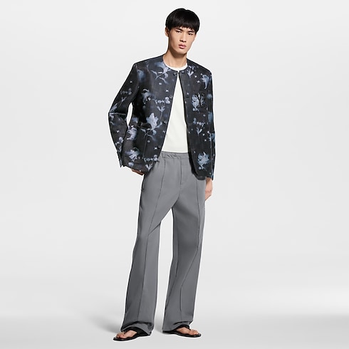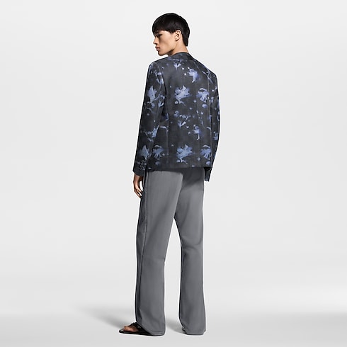 면 실크 소재의 칼라가 없는 여름 재킷. 이번 컬렉션의 경쾌한 플로럴 모티프에 살짝 질감을 살린 다미에 모티프를 장식한 LV 플라워 엑스레이 자카드를 은은하게 더한 디자인. 가슴 포켓에 고급스러운 시그니처 감성을 선사하는 톤온톤의 비즈를 수놓은 LV 디테일. 세련되고 현대적인 매력을 자아내는 둥근 칼라와 천으로 감싼 버튼.
