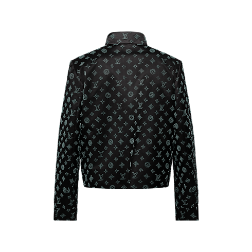 2025 봄-여름 패션쇼의 댄디한 파일럿 스타일에서 영감을 받은 실크 플라이트 수트 재킷. 반짝이는 비즈를 수놓은 전체적인 모노그램 모티프 장식. 스탠딩 칼라와 사선 지퍼 포켓으로 현대적인 감각을 더한 고급스러운 디자인. 이번 시즌의 블랙 색조 실루엣과 매치하여 강렬한 이브닝 룩을 연출하기 좋은 아이템.