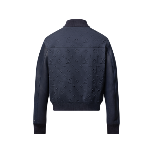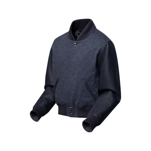 세련된 네이비 블루 색상으로 선보이는 바시티 재킷. 양각 처리한 모노그램을 전체적으로 입힌 면 소재의 바디 부분. 퀼팅 처리한 안감. 왼쪽 소맷단의 양각 처리한 3D 루이 비통 레터링이 돋보이는 톤온톤 카프스킨 소재의 소매. 모든 계절에 어울리는 클래식한 스타일을 연출할 수 있는 활용도 좋은 우아한 색상의 아이템.