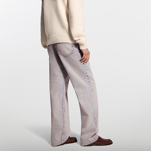 인도의 전통적인 천연 섬유 염색 기법에서 영감을 받은 바이올렛 색조로 빈티지하고 바랜 듯한 느낌을 선사하는 데님 스케이트 팬츠. 2026 봄-여름 패션쇼에서 선보인 아이템. 에이지드 골드 색상 금속 소재로 포인트를 준 버튼과 리벳. 티켓 포켓과 자케론을 장식하는 누벅 가죽 소재의 시그니처. 매칭되는 재킷과 함께 캐주얼한 실루엣에 댄디한 반전 매력을 더할 수 있는 아이템.