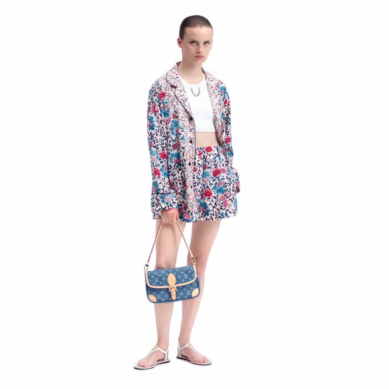 이번 시즌을 대표하는 로맨틱한 플라워 넝쿨 모티프로 생기를 불어넣은 하우스의 클래식한 파자마 셔츠. 유려한 실크 크레이프 드 신 소재. 은은한 대비를 이루는 시그니처 모노그램 블룸 프린트로 포인트를 준 앞면과 뒷면. 노치트 칼라, 패치 포켓 및 커프스 부분의 대조적인 파이핑 디테일이 클래식한 라운지웨어 감성을 선사하는 아이템.