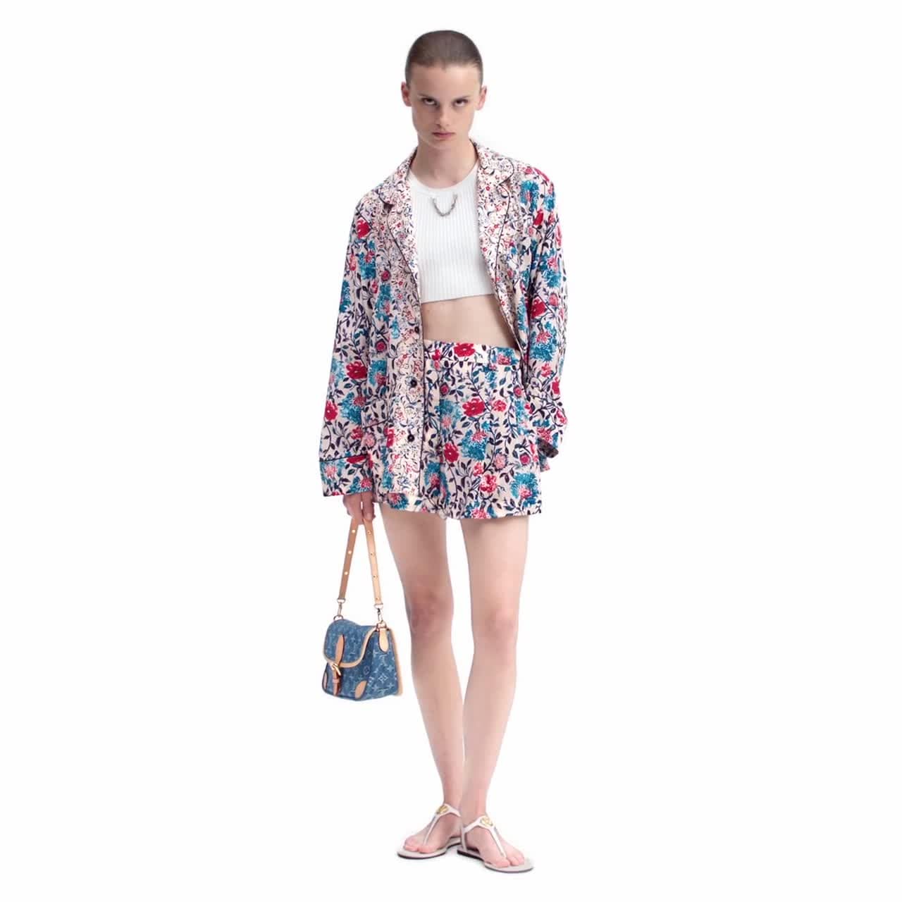 하늘거리는 실크 크레이프 드 신 소재로 구현해낸 유연한 실루엣으로 여름 분위기를 자아내는 세련된 쇼츠. 이번 시즌의 플로럴 바인 모티프가 전체적으로 프린트된 매력적인 디자인. 와이드 레그 부분의 볼륨을 강조하는 앞면의 플리츠. 우아하고 드레시한 룩을 더욱 돋보이게 하는 앞면의 숨겨진 잠금장치 및 뒷면의 웰트 포켓.