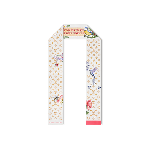 우아함과 창의성을 감각적으로 예찬하는 퐁텐느 파르퓌메 방도. 고급스러운 실크 소재. 빈티지한 향수 추출기를 연상시키는 이미지와 부드러운 색상을 입힌 섬세한 꽃이 어우러진 정교하고 예술적인 패턴. 편안하게 연출할 수 있는 매우 여성적인 디자인. 오감을 만족시키는 즐거움에 매혹적인 오마주를 바치는 아이템.