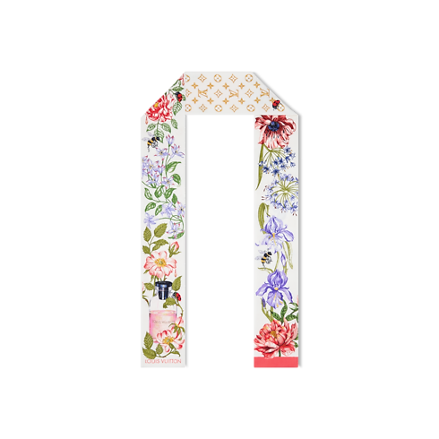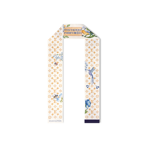 우아함과 창의성을 감각적으로 예찬하는 퐁텐느 파르퓌메 방도. 고급스러운 실크 소재. 빈티지한 향수 추출기를 연상시키는 이미지와 부드러운 색상을 입힌 섬세한 꽃이 어우러진 정교하고 예술적인 패턴. 편안하게 연출할 수 있는 매우 여성적인 디자인. 오감을 만족시키는 즐거움에 매혹적인 오마주를 바치는 아이템.