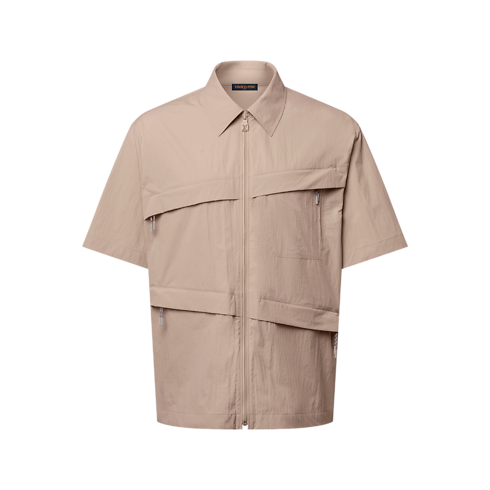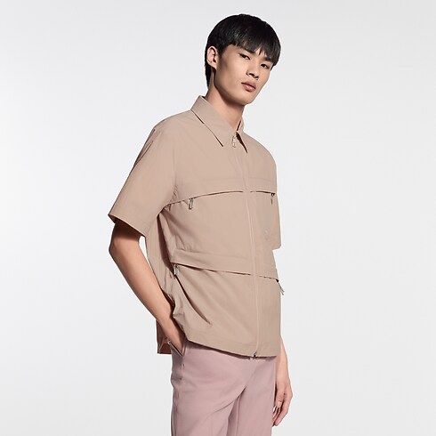 2026 봄-여름 패션쇼의 세련된 등산 테마에서 영감을 받아 가벼운 테크니컬 패브릭 소재 및 유행을 타지 않는 카멜 색조로 선보이는 반소매 집업 셔츠. 비대칭으로 배치한 지퍼형 포켓 네 개와 스포티한 풀러가 현대적인 감각을 더하는 디자인. 톤온톤 시그니처 자수로 포인트를 준 가슴 포켓. 일반 셔츠처럼 연출하거나 티셔츠 위에 레이어링하여 잠그지 않고 스타일링하기 좋은 아이템.