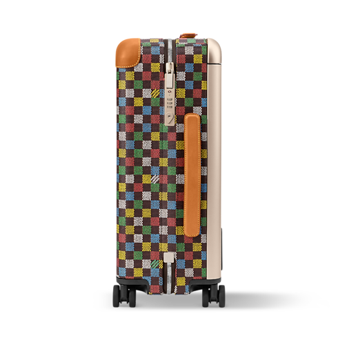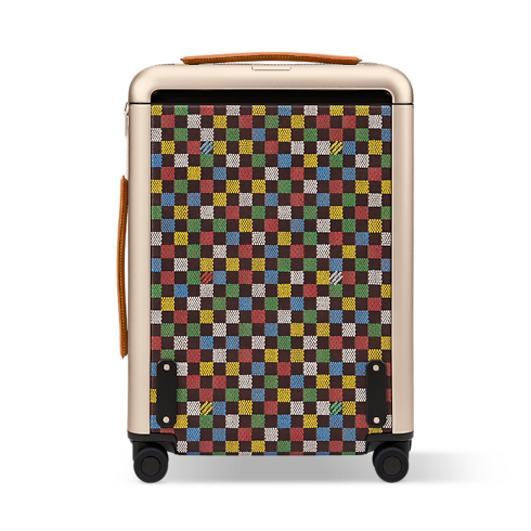 과거와 현재를 함께 담아낸 퍼렐 윌리엄스의 호라이즌 55 롤링 수트케이스. 퍼렐 윌리엄스 특유의 LV 버스 다미에 에벤 캔버스 소재. 블랙 및 브라운 색상의 오리지널 다미에 에벤 모티프 위에 손으로 칠한 듯한 느낌을 주는 다채로운 색감의 체크 패턴을 프린트한 디자인. 강화된 모서리, 상단 핸들 및 케인 핸들 부분의 카우하이드 가죽 디테일.