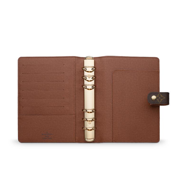 - 모노그램 캔버스, 크로스 그레인 레더 라이닝 - 프레스 스터드 클로저 - 여섯개의 링 바인더, 여섯개의 크레딧 카드 슬롯, 두 개의 내부 수납공간 - 아젠다 리필은 별도 판매합니다.