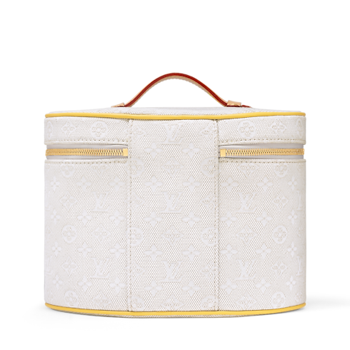 Part of the Louis Vuitton Baby collection, the Jacquard Vanity is an elegant way to transport toiletries and other essentials. It is crafted from Monogram jacquard canvas, which was created exclusively for the collection, and is finished with a natural leather handle recalling the House's historic trunks. It contains two pouches, which are ideal for storing items of different sizes.