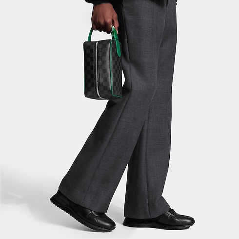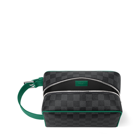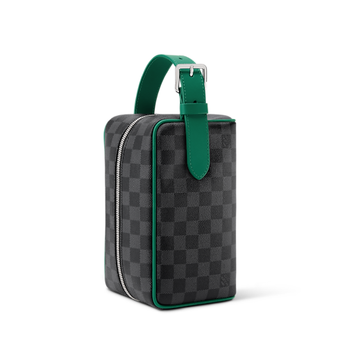 다미에 그라파이트 코팅 캔버스 소재와 다크 그린 색조의 가죽 핸들, 실버 색상 버클이 조화를 이루는 로켓 돕 키트 토일레트리 백. 컴팩트한 크기지만 모든 필수품을 휴대할 만큼 넉넉한 수납공간. 내부 지퍼형 포켓, 세탁 가능한 안감, 옆면의 편안한 조절형 핸들 등을 구성해 편의성을 높인 실용적인 디자인.