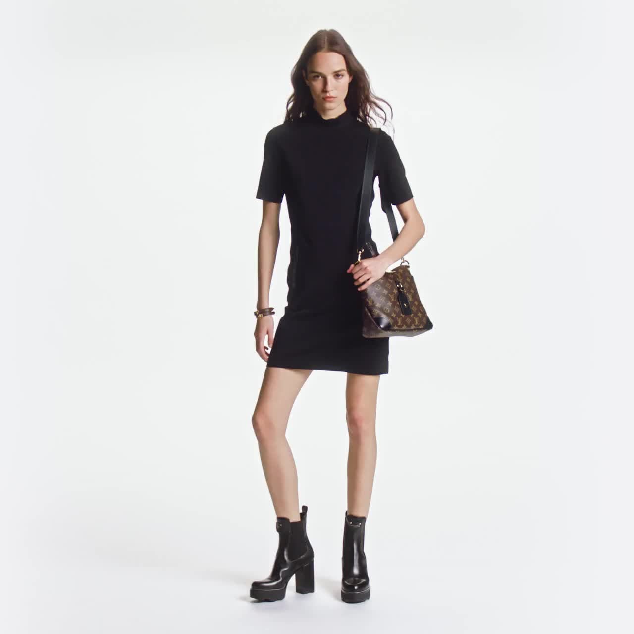 송아지 가죽 소재에 청키한 플랫폼과 하이힐을 더해 새롭게 선보이는 LV 보부르 앵클 부츠. 첼시 부츠 스타일의 신축성 있는 옆면 패널을 구성하여 손쉽게 신고 벗을 수 있는 아이템. 모노그램 캔버스 소재의 트리밍과 백 루프가 조화를 이루는 디자인. 힐 부분의 LV 이니셜 스터드 장식.