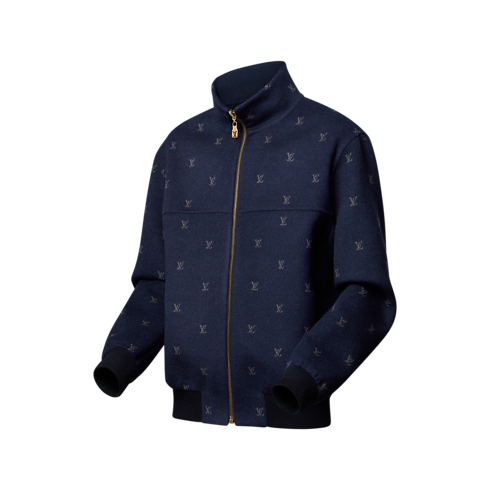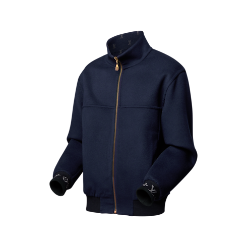 간절기 필수 아이템인 우아한 네이비 색상의 리버서블 블루종. 고급스럽고 부드러운 울 및 실크 혼방 더블 페이스 패브릭 소재. 한쪽 면에는 LV 블라종 자카드를 전체적으로 섬세하게 장식하고, 반대쪽 면에는 웨이스트밴드와 소맷단에 모노그램 리브드 디테일을 더한 디자인. 데일리 룩에 스마트한 포인트를 더해줄 클래식한 아이템.