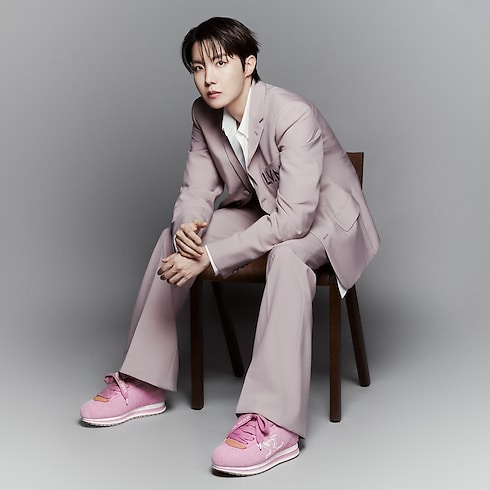 퍼렐 윌리엄스와 가수 제이홉의 협업으로 선보이는 LV 버터소프트 스니커즈 익스클루시브 에디션. 헤어리 스웨이드 송아지 가죽 소재. 제이홉의 긍정적인 에너지를 담아낸 부드러운 핑크 색상. 신발 끈에 프린트된 'Your, my Hope' 문구 및 힐 부분의 천연 가죽 소재 트리밍 뒷면에 양각으로 새긴 다람쥐와 도토리 등 제이홉을 상징하는 모티프가 반영된 디자인. 루이 비통 가죽 제품과 일상적인 아이템을 개성 있게 꾸미는 한국의 트렌드가 엿보이는 모노그