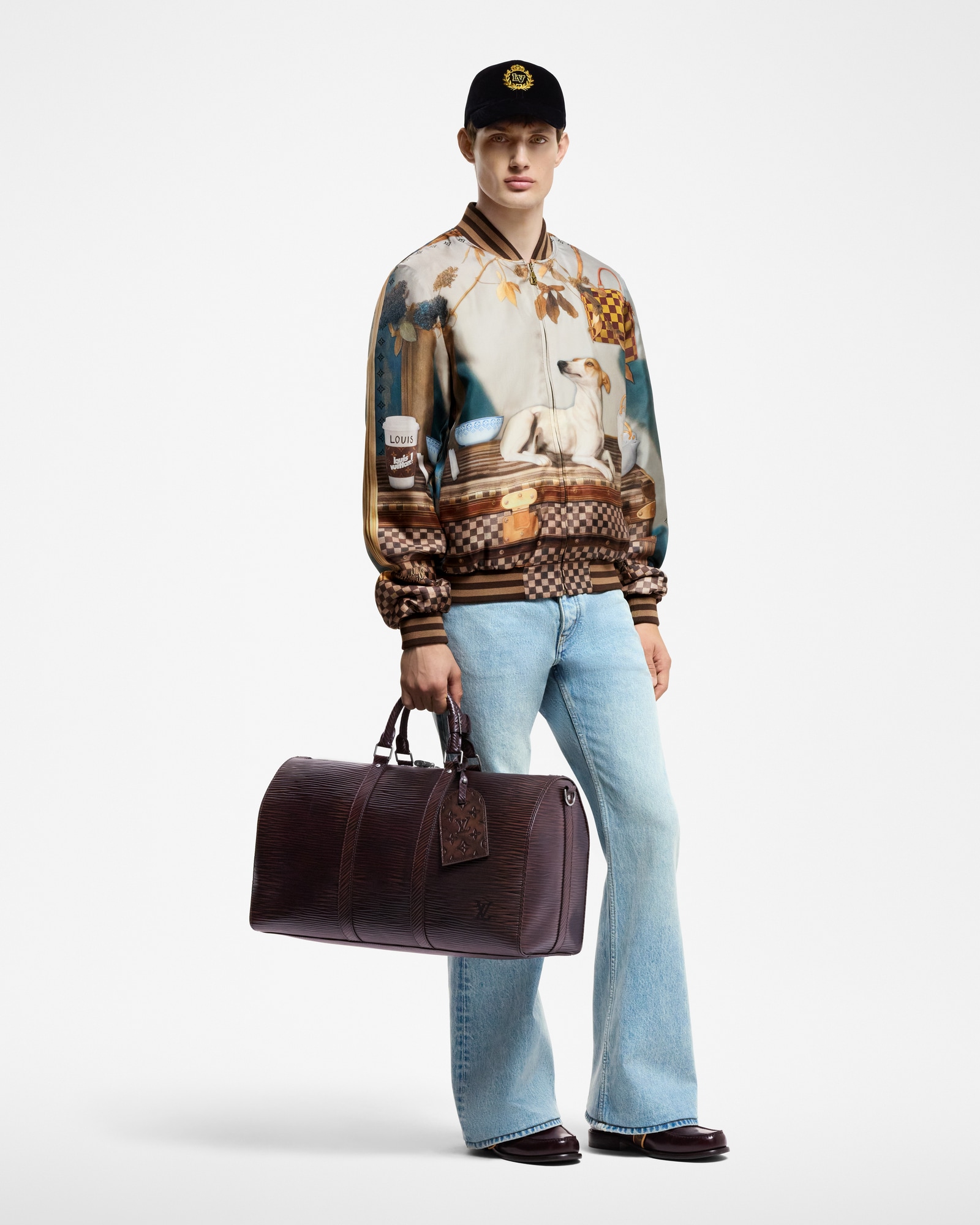 고급스러운 질감과 디자인이 돋보이는 장엄하고 실용적인 LV 크레스트(LV Crest) 벨벳 캡. 골드 색상의 하우스 문장을 중앙 부분에 수놓은 블랙 색상의 벨벳 소재. 색 조합과 스타일 덕분에 다양한 룩에 어울릴 활용도 높은 액세서리.