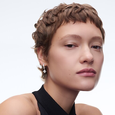 메종의 탁월한 주얼리 장인 정신이 엿보이는 18K 화이트 골드 소재의 LV 다이아몬드 파베 후프. LV 모노그램 스타 컷 다이아몬드가 돋보이는 디자인. 브릴리언트 라운드 컷 다이아몬드를 장식한 후프. 독특한 시그니처 감성을 담아내기 위해 루이 비통의 전설적인 모노그램 패턴의 스타일리시한 플라워 디자인을 반영한 센터 스톤 바스켓. 경쾌하고 다양하게 믹스매치할 수 있어 영원히 간직하고 기억할 만한 선물이 되어줄 주얼리.