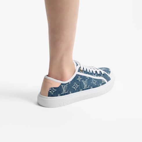 클래식한 스타일에 빈티지한 감각을 은은하게 더한 모노그램 데님 소재의 LV 라군 스니커즈. 천연 가죽 소재의 트리밍, 루이 비통 시그니처, 각인이 새겨진 골드 색상의 아일릿 등 세련된 디테일이 돋보이는 디자인. 화이트 색상의 파이핑과 신발 끈 디테일 및 모노그램 플라워로 장식한 화이트 색상의 고무 겉창.