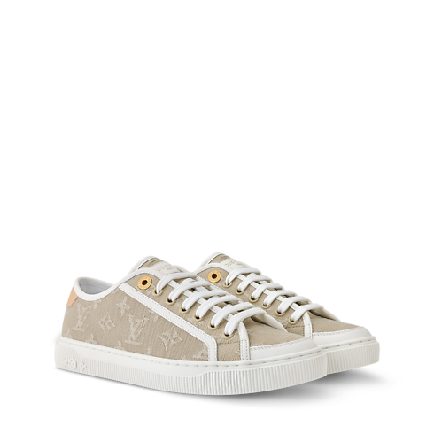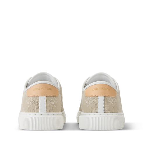 모노그램 데님 소재로 산뜻한 여름 감각을 불어넣은 LV 라군 스니커즈. 화이트 색상의 파이핑과 신발 끈, 화이트 색상의 고무 소재 겉창을 구성해 빈티지한 감성을 은은하게 전하는 간결하면서도 스타일리시한 디자인. 골드 색조의 아일릿과 뒷면의 루이 비통 시그니처가 더해진 천연 가죽 트리밍 등 세련된 디테일이 특징.
