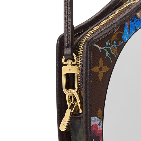어떤 스타일에도 동화 같은 감성을 선사해줄 LV 미러(LV Mirror). 생기 넘치는 플로럴 패턴의 시그니처 모노그램 캔버스 소재와 카우하이드 트리밍이 대비를 이루는 경쾌한 디자인. 탈착형 스트랩. 작은 필수품을 안전하게 보관할 수 있는 골드 색상의 지퍼형 잠금.