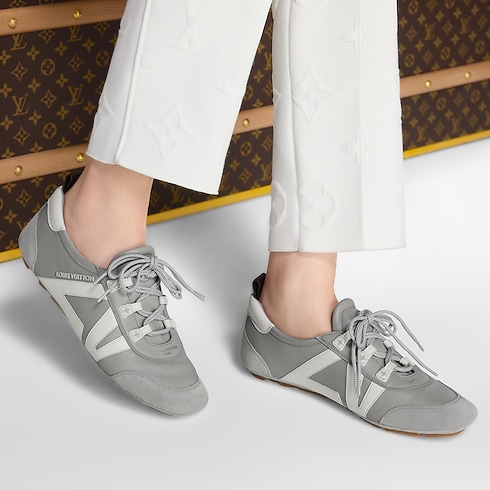 램스킨 소재와 스웨이드 카프스킨 소재를 결합해 재해석한 LV 스니커리나 스니커즈 발레리나. 이름에서 알 수 있듯이 스니커즈의 편안함과 발레 펌프스의 가벼움이 어우러진 혁신적인 아이템. 옆면의 스타일리시한 LV 시그니처, 모노그램 캔버스 소재의 백 루프와 같은 시그니처 디테일이 특징.