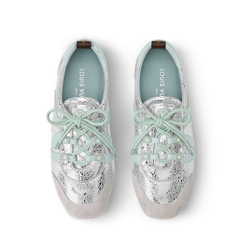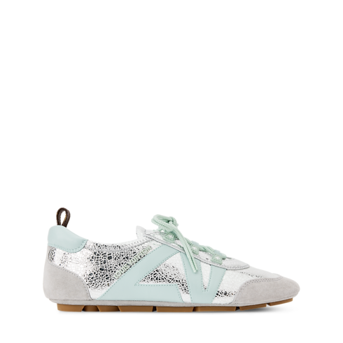 크랙 효과를 준 메탈릭한 램스킨에 파스텔 색조의 트리밍을 더해 경쾌하고 젊은 감각을 불어넣은 LV 스니커리나 스니커 발레리나. 옆면의 역동적인 LV 로고와 모노그램 플라워를 장식한 이중 신발 끈 등 다양한 시그니처 디테일이 돋보이는 트렌디한 디자인. 사케토 제법으로 제작되어 가볍고 유연한 아이템.