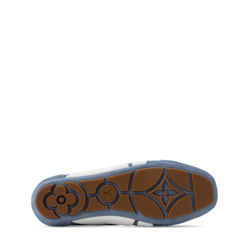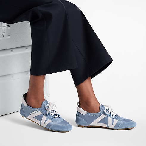 테크니컬 새틴과 스웨이드 송아지 가죽 소재를 조합한 LV 스니커리나 스니커즈 발레리나. 스니커즈와 발레 펌프스의 특징이 결합된 트렌디한 스타일. 사케토 제법으로 제작되어 가볍고 유연한 아이템. 신발 끈 루프에 장식된 모노그램 플라워와 옆면의 LV 이니셜 등 하우스의 시그니처를 더한 상단 부분.