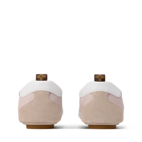 테크니컬 새틴과 스웨이드 송아지 가죽 조합으로 선보이는 익스클루시브한 LV 스니커리나 스니커 발레리나. 한국을 위해 특별히 제작된 하우스의 비비엔 마스코트 장식 패치가 특징인 상단 부분. 스니커즈와 발레 펌프스의 장점을 결합한 날렵하고 가벼운 구조가 돋보이는 트렌디한 디자인.