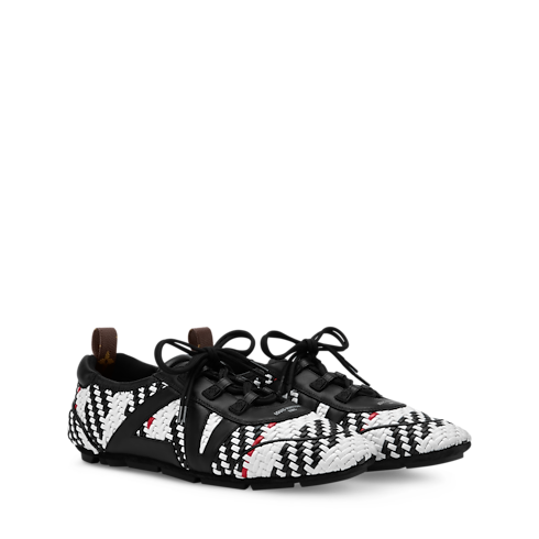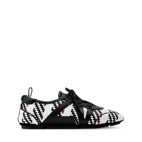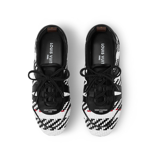 여성 아티스틱 디렉터 니콜라 제스키에르가 하우스의 우수한 장인 정신을 강조하기 위해 2026 봄-여름 패션쇼에서 새롭게 선보인 LV 스니커리나 스니커 발레리나. 정교하게 엮은 램스킨 소재. 가죽 소재의 LV 디테일을 더한 옆면. 전체 고무 소재의 겉창. 모노그램 캔버스 소재의 백 루프.