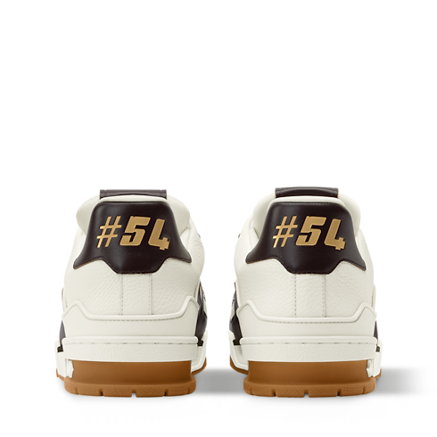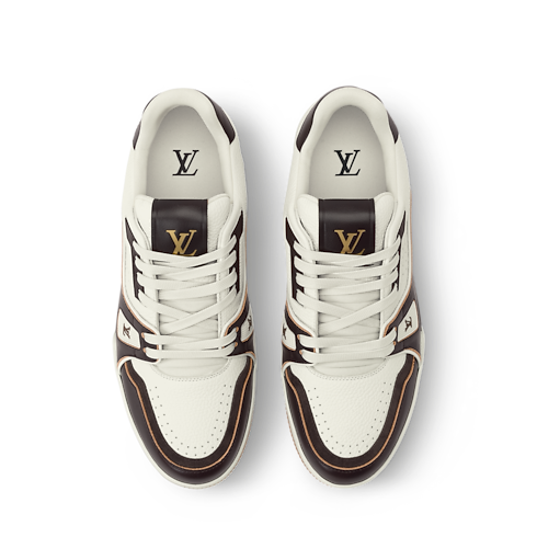 그레인 송아지 가죽과 에이지드 송아지 가죽을 결합해 현대적인 스타일에 빈티지한 감각을 더한 세련된 LV 트레이너 스니커즈. 클래식한 농구화에서 영감을 받은 아이코닉한 디자인. 다양한 하우스 시그니처가 돋보이는 정교한 상단 부분. 모노그램 플라워가 장식된 테크니컬 고무 소재의 겉창.