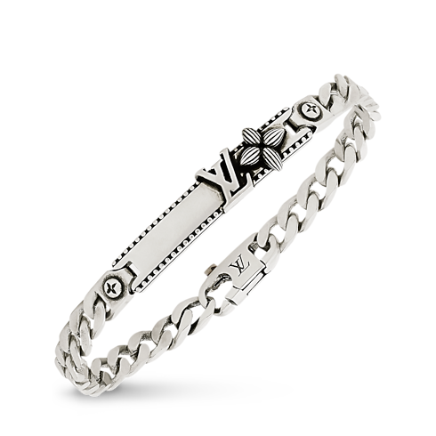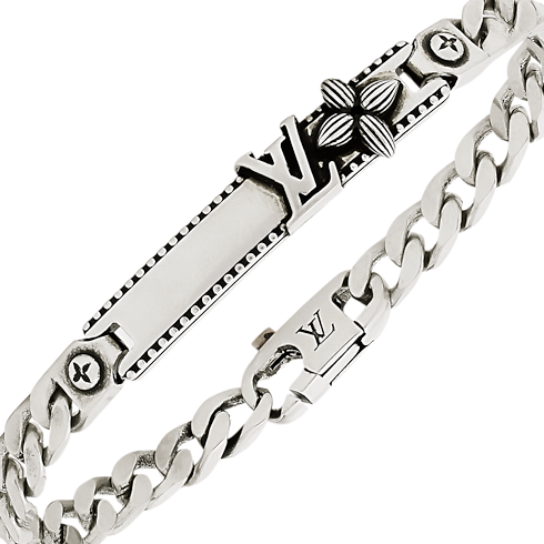 클래식한 ID 플레이트 룩을 현대적으로 재해석한 LV 위스퍼 구르메트 팔찌. 땋은 듯한 링크와 각인 디테일의 클래스프. 두 개의 LV 이니셜과 하나의 모노그램 플라워로 포인트를 준 디자인. 단독으로 착용하거나 다른 팔찌와 레이어링하여 편안하게 연출할 수 있는 아이템.