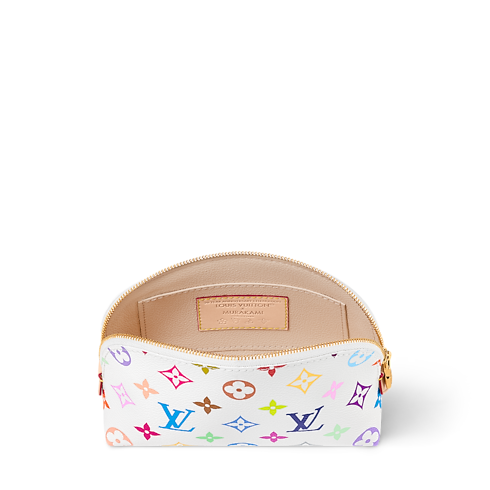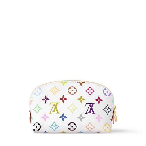 다채롭고 컴팩트한 코스메틱 파우치 PM. 다양한 카테고리를 아우르는 루이 비통 x 무라카미 협업 컬렉션을 기념하는 필수 아이템. 세계적 예술가인 무라카미 다카시 작품 특유의 경쾌한 무지개 색조로 재해석한 하우스의 상징적인 모노그램 코팅 캔버스 소재. 골드 색상의 지퍼형 잠금장치. 세탁 가능한 실용적인 안감. 작은 소지품을 보관할 수 있는 여분의 플랫 포켓.