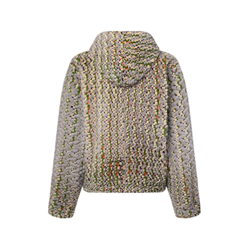 2026 봄-여름 패션쇼에서 선보인 유려한 밍크 후디드 블루종. 스포티한 실루엣을 퍼 공예의 정수를 드러내는 작품으로 변모시킨 아이템. 다양한 길이와 색조의 밍크로 완성한 인따르시아 마이크로 다미에 모티프로 풍부하고 물결치는 듯한 표면을 구현한 디자인. 아웃도어 느낌을 강조하는 오렌지 색상의 테크니컬 드로스트링. 하우스의 트렁크 제작 헤리티지가 엿보이는 VVN 색상의 시그니처 패치.