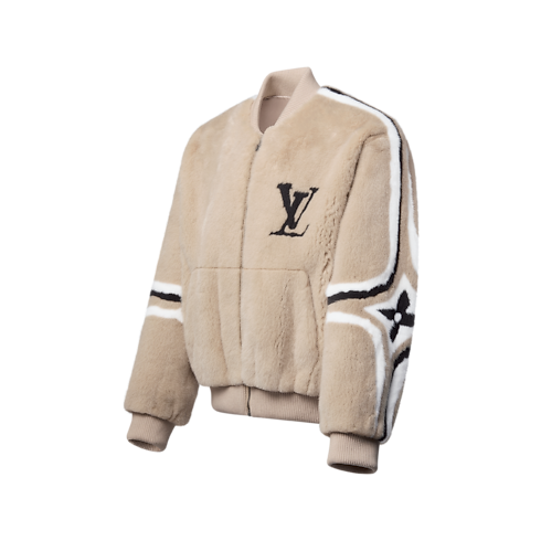 고급스러운 밍크 블루종. 라운드 형태의 보머 실루엣에 리브드 트리밍을 더해 포근하고 현대적인 아프레 스키 스타일을 연출하는 디자인. 섬세한 크림 색상의 풍부하고 매끄러운 퍼 소재. 소매 부분의 모노그램 플라워 시그니처가 더해진 세련된 인따르시아 밴드 및 가슴 부분의 그래픽한 LV 레터링 디테일이 특징.