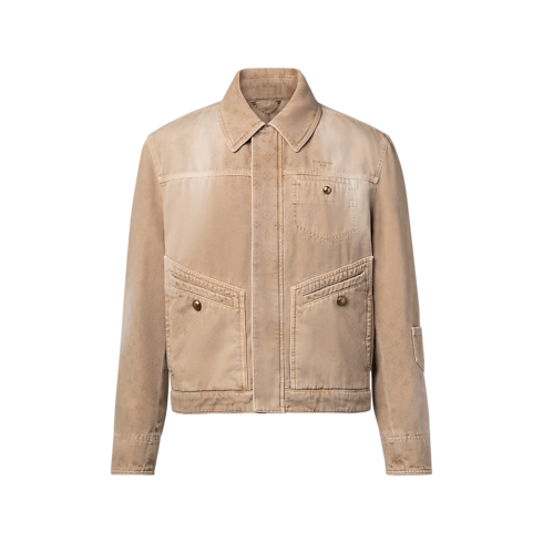 2026년 봄-여름 패션쇼에서 선보인 카멜 색상의 데님 워크웨어 재킷. 인도의 천연 텍스타일 염색 전통에서 영감을 받아 살짝 바랜 듯한 분위기를 연출하는 디자인. 면 캔버스 위에 더한 페이디드 모노그램 모티프가 특징. 가슴 부분을 장식한 은은한 톤온톤의 자수 시그니처. 세련된 매력을 더해주는 에이지드 골드 색조의 버튼. 매칭되는 팬츠와 함께 토털 룩으로 스타일링 할 수 있는 아이템.