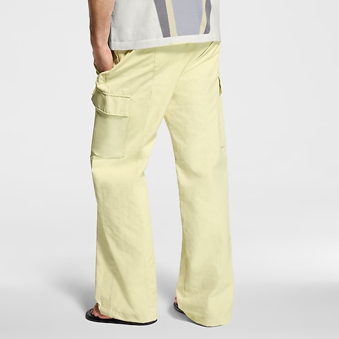 봄 시즌에 착용하기 좋은 페일 바닐라 옐로우 색상의 카고 팬츠. 가벼운 테크니컬 면 립스톱 소재. 은은하게 질감을 살린 모노그램 자카드 모티프를 입힌 디자인. 패치 포켓에 더한 모노그램 플라워 리벳과 신축성 있는 웨이스트 밴드 뒤쪽을 장식한 우븐 시그니처 라벨이 하우스 고유의 감각을 선사하는 스타일. 매칭되는 파카와 함께 생동감 넘치는 룩으로 연출할 수 있는 아이템.