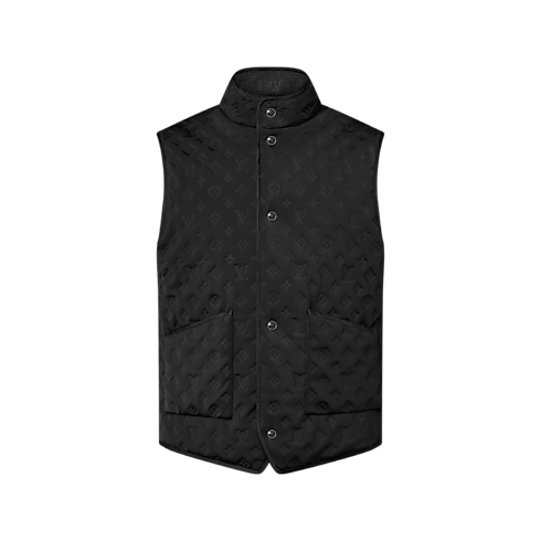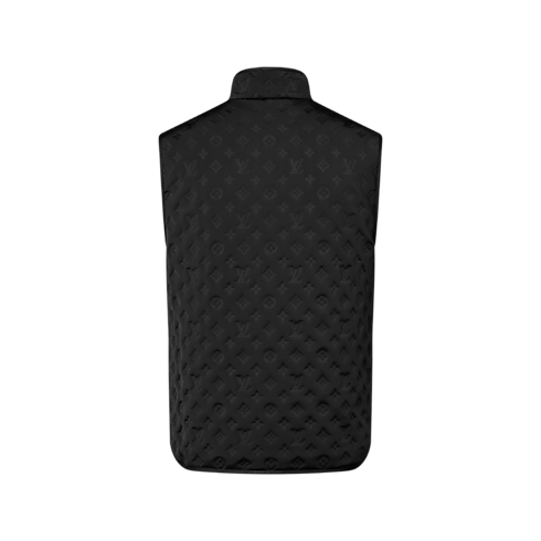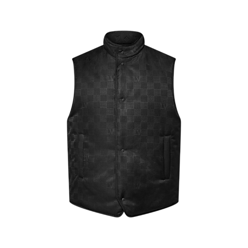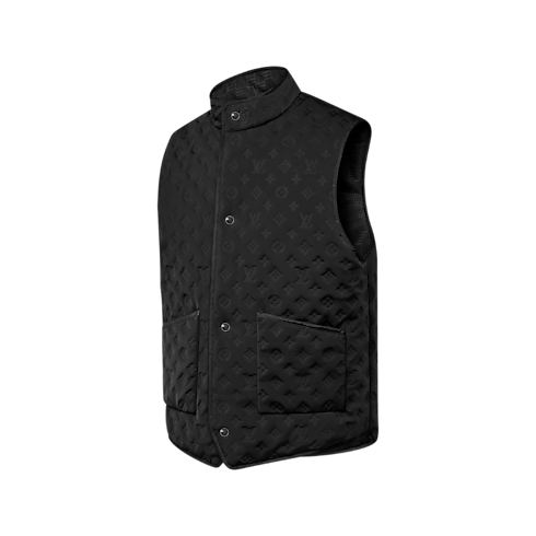 가볍게 패딩 처리한 블랙 색상의 간절기용 리버서블 질레. 코트 속의 미드 레이어로 활용하거나 아우터로 착용해 더욱 캐주얼하게 연출할 수 있는 디자인. 퀼팅 디테일의 모노그램 모티프가 장식된 한쪽 면과 자카드 다미에 패턴을 입힌 반대쪽 면으로 구성된 디자인. 그래픽하거나 클래식한 시그니처 포인트를 더할 수 있는 아이템.